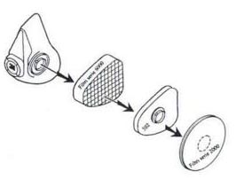 需搭配全面罩/半面罩雙罐式防毒面具及搭配2000系列濾棉或7093濾棉匣使用
